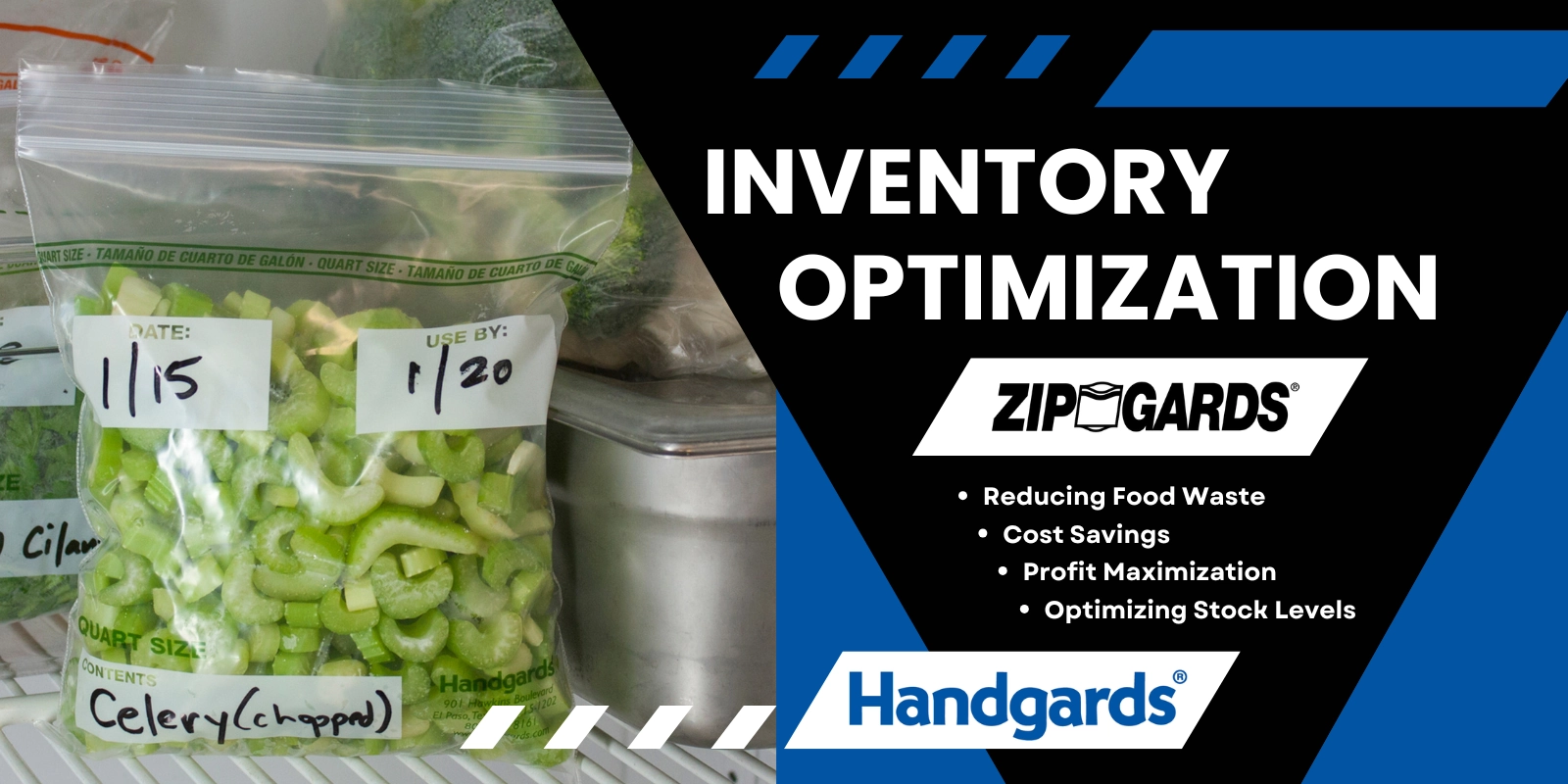 However, the success of predictive inventory management is also highly dependent on proper storage solutions to ensure that ingredients stay fresh and are used efficiently. This is where Handgards Zipgards Reclosable Bags come into play. They offer a practical solution for both portioning and storing ingredients, helping restaurants maintain optimized inventory levels and reducing waste. Zipgards LD Reclosable Bags, with a color-coded bilingual labeling by size and have write-on blocks for content identification, are available in snack, pint, quart, gallon and two gallon sizes – and are a must for inventory optimization. Here’s why: