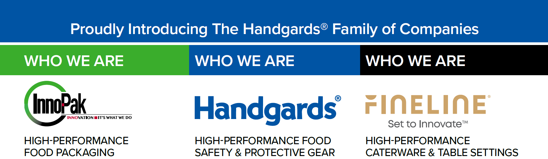 The Handgards Family of Companies – Inno-Pak, Handgards, and Fineline – represents a powerful alliance of foodservice leaders, each bringing unique strengths and capabilities to deliver comprehensive, high-performance solutions for food safety, packaging, and presentation.