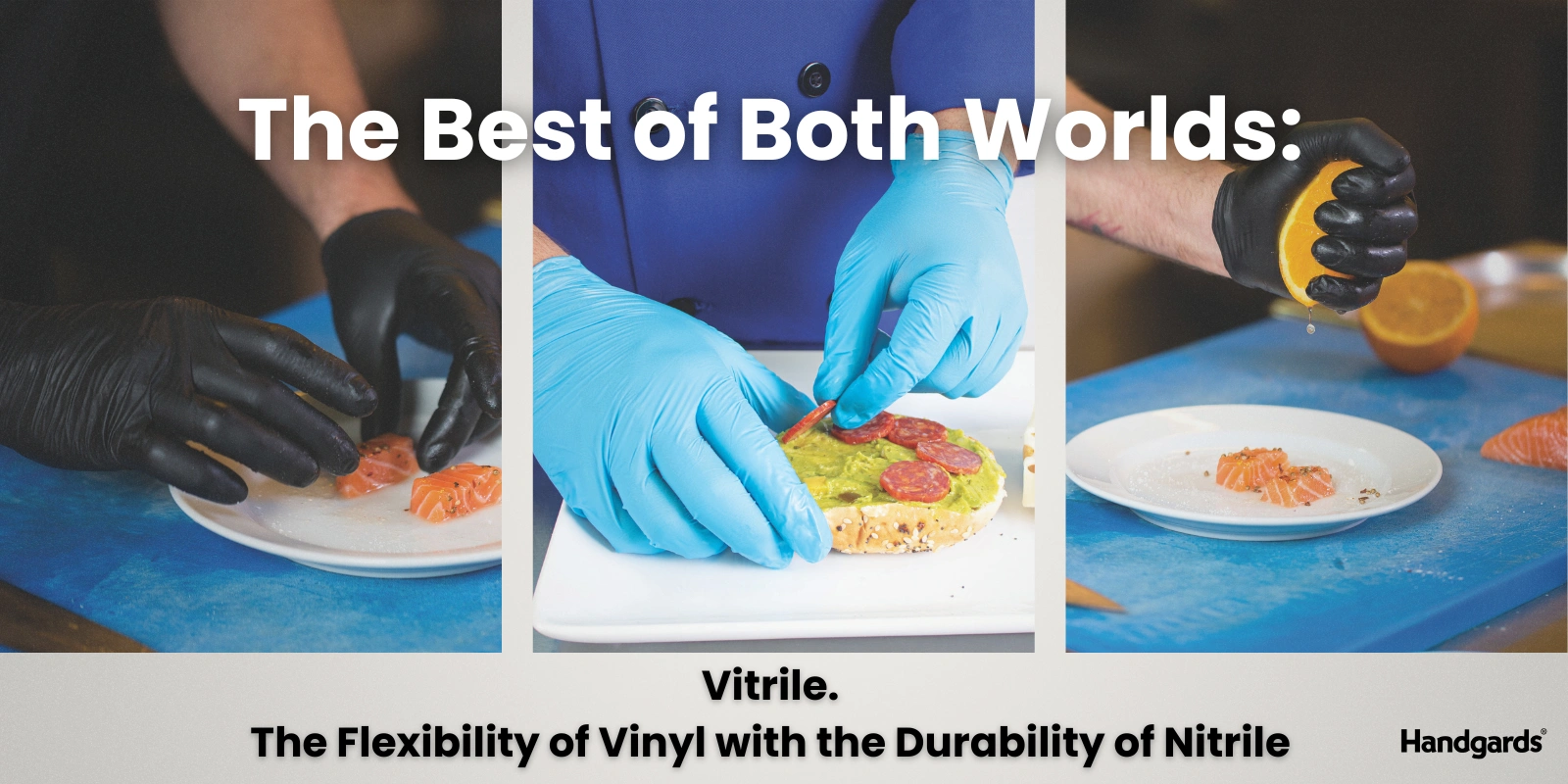 BasicGards Vitrile Disposable Gloves, available in both blue and black, combine the flexibility of vinyl with the strength of nitrile, creating a dependable glove that stands up to everyday foodservice demands at a significantly lower cost than nitrile alone.