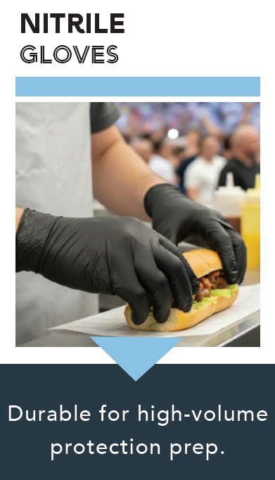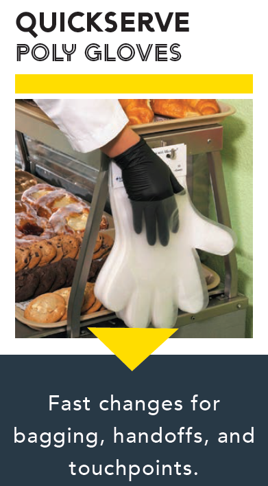 Stadium concessions require constant transitions between bagging, handoffs, and POS touchpoints. QuickServe poly gloves support quick on/off changes to keep service moving during peak game day volume – and can be used to double-glove over nitrile.