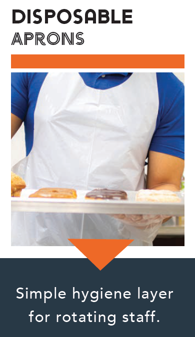 With rotating staff and fast-moving stations, disposable aprons help maintain cleanliness and hygiene through peak shifts – especially in guest-facing concession environments.