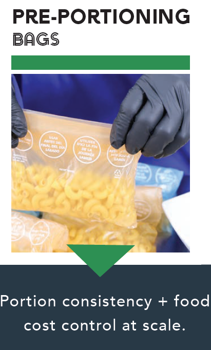 When you’re serving thousands, portion drift adds up quickly. Pre-portioning bags help lock in predictable units for sauces, toppings, and prep kits – supporting both food cost control and speed of execution.